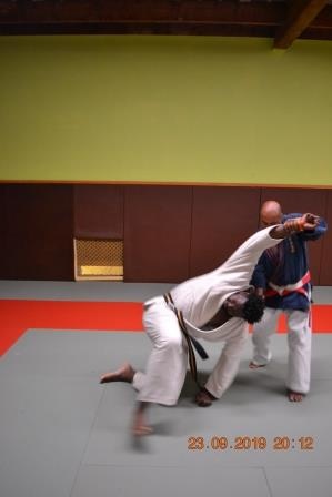 Shiho Nage: (projection par l’épaule en luxation) réalisée par Sensei Roland HERNAEZ et notre Sensei Vik BHADYE